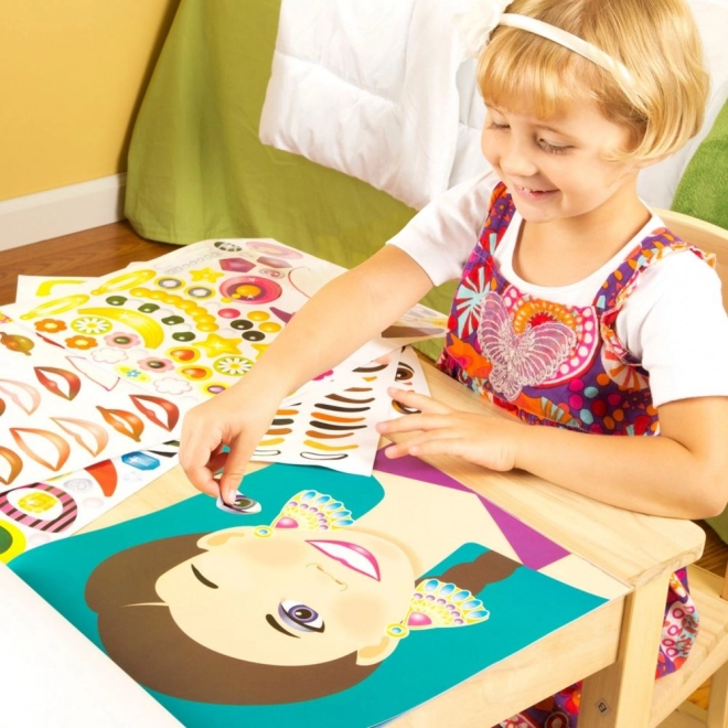 Komplet je idealen za ustvarjanje doma, v vrtcu in na poti. Spodbuja razvoj domišljije, fine motorike ter pomaga otrokom spoznavati čustva in mimiko. V pakiranju najdete 20 barvnih predlog obrazov in 5 listov z množico nalepk obraznih potez in dodatkov.