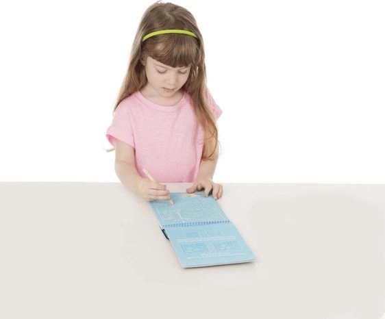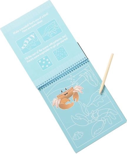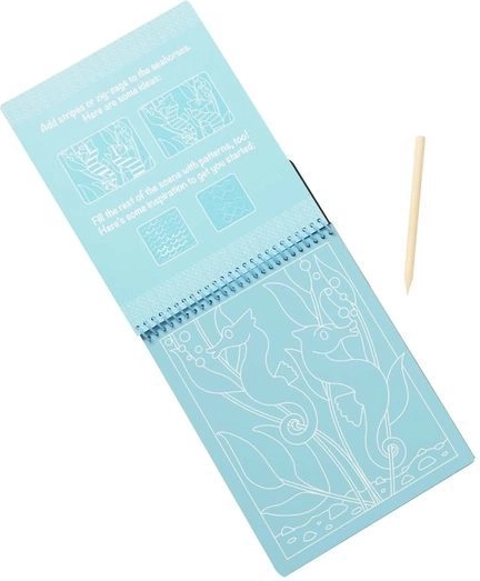 Ta praskalni zvezek z motivi morskega življenja prinaša otrokom neskončne ure ustvarjalne zabave. Dovolj je, da z nežnimi potezami postrgajo zgornjo plast s posebnim lesenim pisalom in barvite scene z ribicami, želvami ali morskimi konjički se začnejo postopoma razkrivati. Aktivnost je intuitivna, motivirajoča in brez potrebe po barvah ali lepilih.