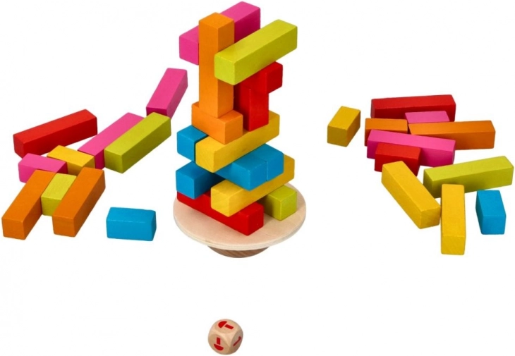 Zabavna in napeta lesena balansirna igra za vso družino. Na nestabilno polkrožno osnovo boste zlagali barvne kocke ter urili fino motoriko, potrpežljivost in taktično razmišljanje. Zahvaljujoč kakovostnemu lesu in varnim barvam je igra vzdržljiva, varna in odlično razvija koordinacijske sposobnosti.