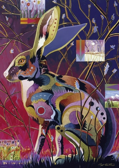 Ta oblikovalska sestavljanka prinaša izrazito, dekorativno kompozicijo umetnika Boba Coontsa, ki živi v Skalnem gorovju in je zaslovel s svojim barvitim slogom, ki ujame lepoto živali. Motiv zajca bo navdušil ljubitelje narave in zbiratelje izvirnih ilustracij.