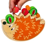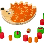 Pomoč otrokom pri razvoju fine motorike in koordinacije roke in oči med uravnoteženjem raznobarvnih delov na igralnega ježka.