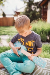 Ta otroška kitara/ukulele z veselimi motivi zajčka, lisice in medvedka je odlična izbira za prvi glasbeni instrument. Zaradi kompaktnih mer in lahke konstrukcije dobro leži v malih rokah ter spodbuja otroke k naravnemu raziskovanju zvokov in ritmov.