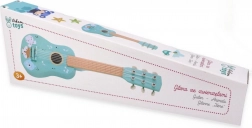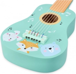 S šestimi strunami in delujočimi mehanikami bodo otroci preizkusili pravo igranje in prve akorde, čeprav gre za varen otroški instrument.