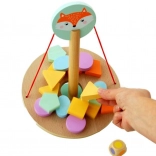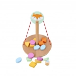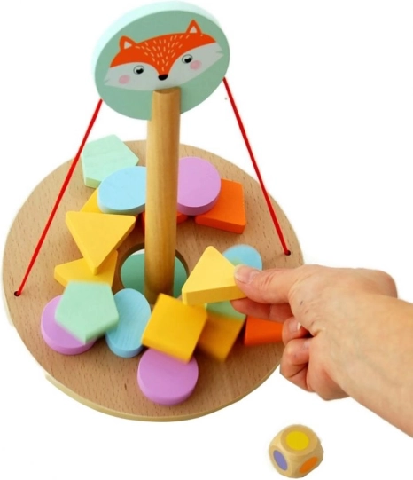 Ta lesena ravnotežna igra z lisico ponuja odlično kombinacijo zabave in učenja. Otroci zlagajo različne barvne oblike na osnovo s sredinskim stebričkom in si prizadevajo ohraniti stabilnost celotnega stolpa. Med igro naravno urijo fino motoriko, koordinacijo oko–roka in logično razmišljanje.