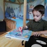 Veseli magnetni labirint z gozdnimi živalicami spremeni učenje v igro. Otrok s pomočjo magnetne paličice vodi kroglice po prepletenih stezicah, povezuje barve ter vadi osredotočenost in natančnost. Zaradi zaprte izvedbe se kroglice ne izgubijo, igra pa je varna doma in na poti.