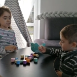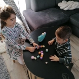 Otroci polagajo lesene valjčke na pozibavajočo se osnovo v obliki narvala ter urijo fino motoriko, koordinacijo in ocenjevanje. Vsak poteza je izziv, kako ohraniti stabilnost.