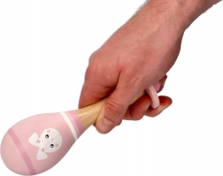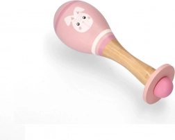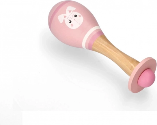 Ta prikupen rožnat leseni marakas z zajčkom je odličen prvi glasbeni instrument za najmlajše. Nežen zvok ropotuljice podpira razvoj sluha, ritma in naravne radovednosti, medtem ko sta oblika in velikost popolnoma prilagojeni majhnim otroškim ročicam. Naraven les, gladka površina in skrbno zaobljeni robovi zagotavljajo varno igro vsak dan.