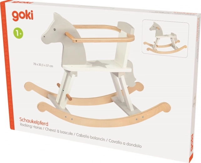 Gugalni konjiček Goki izstopa z modernim in barvitim videzom, navdihnjenim s skandinavskim slogom. Zahvaljujoč kakovostnemu lesu in skrbni izdelavi nudi varno in udobno vožnjo za najmlajše otroke. Varnostni okvir je mogoče enostavno odstraniti, ko otrok zraste in z nogami doseže tla.