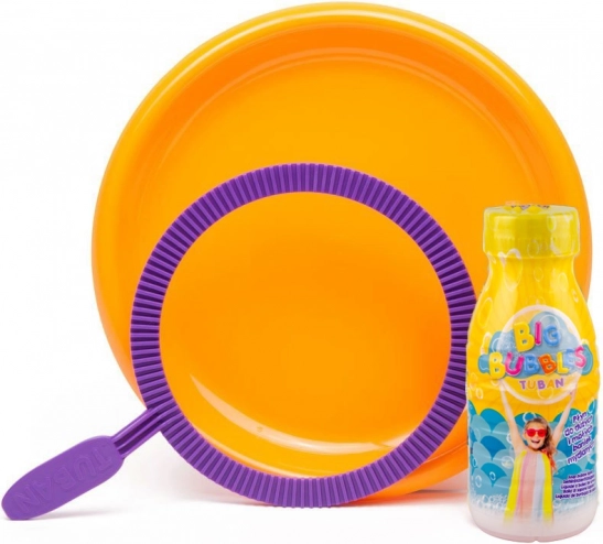 Plastična posodica, obroč in 250 ml kakovostne raztopine TUBAN – odprete in lahko takoj ustvarjate mehurčke.