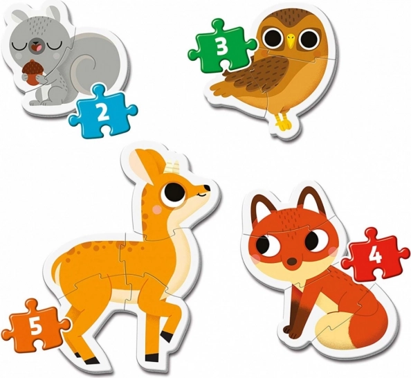 Vsaka sestavljanka ima različno število koščkov (2, 3, 4 in 5), kar omogoča otrokom postopno povečevanje zahtevnosti. Deli so veliki, robustni in udobni za prijem, zato so odlični za male otroške roke.