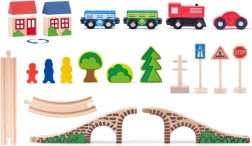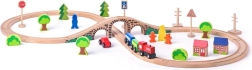 Lesena vlakovna osmica z mostom je več kot le igrača. Je idealen pripomoček za razvoj otroške domišljije in motoričnih veščin. Set vključuje pisane vlake, drevesa, hišice in prometne znake, ki ustvarjajo realistično okolje za igro.