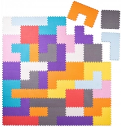 Različno oblikovani kosi brez izjemljivih delov se sestavljajo kot TETRIS in omogočijo ustvariti igralno površino do 120 × 120 cm. Pisane barve vabijo k igri in učenju.