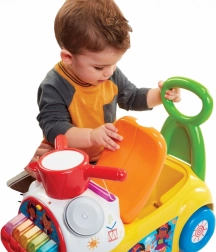 Na sprednji plošči je klaviatura z dvema načinoma: predvajanje 5 veselih koračnic in prosta igra za lastne glasbene poskuse. Praktičen skrit prostor pod sedežem sprejme drobnarije, ki jih mali vozniki želijo imeti vedno pri sebi.