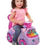 Na sprednjem delu poganjalca so barvite tipke z dvema načinoma: predvajanje 5 veselih pohodnih melodij in prosta glasbena igra, ki spodbuja ustvarjalnost in občutek za ritem. Ne manjka niti skrit predal pod sedežem za drobnarije in priljubljene zaklade.