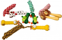 Gladko obdelani leseni ročaji v obliki kužka zagotavljajo zanesljiv oprijem in udobno uporabo. Vesel videz spodbuja redno gibanje.