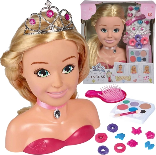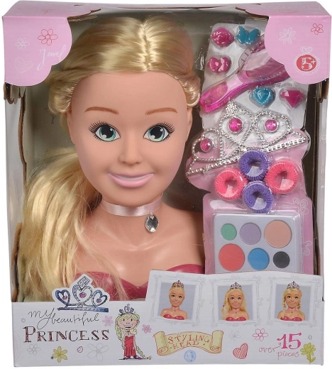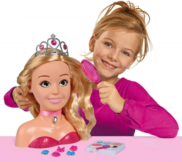 Spodbujajte otrokovo ustvarjalnost z elegantno glavo za oblikovanje PRINCESS znamke SIMBA. Dolgi blond lasje, bogati dodatki in paleta ličil omogočajo ustvarjanje neštetih pričesk in preobrazb, pri čemer igra podpira fino motoriko, domišljijo in občutek za estetiko.