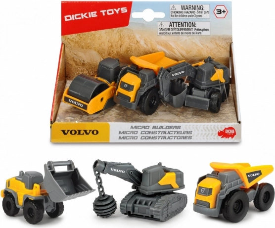 Komplet gradbenih vozil Volvo vključuje tri različne modele: kiper, bager in valjar. Izdelani so iz kakovostne plastike, pisana rumeno-siva izvedba pa bo navdušila vsakega malega graditelja.