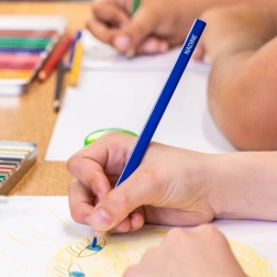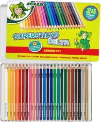Trikotne barvice DELTA prinašajo pestro paleto 24 odtenkov v praktični kovinski škatlici, ki ščiti vsebino doma in na poti. Trikotni ergonomski profil podpira pravilno držo pisala in udobno risanje brez utrujenosti roke, kar bodo cenili tako otroci kot starši.