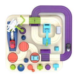Upravni gumbi in vrtljiva kolesca dajejo otrokom nadzor nad dvižnimi ploščadmi, premičnimi platformami ter mostom. Igra razvija načrtovanje in odločanje – mali dirkači morajo razmisliti, kako najbolje prevoziti traso in premagati pasti.