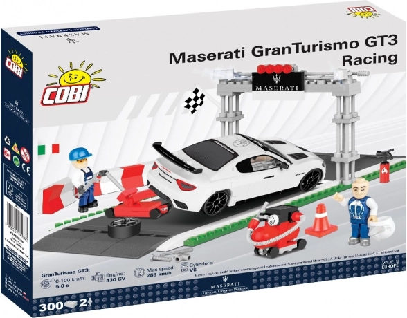 Sestavite si lastno dirkaško sceno z licenčnim kompletom COBI v merilu 1:35. Set prinaša Maserati Gran Turismo GT3 Racing s štartnimi mesti, zaledjem paddocka in 2 figurama (mehanik in dirkač). Zahvaljujoč kakovostnim potiskom, gumijastim pnevmatikam in premičnim kolesom dobite verodostojen model, idealen za igro in razstavljanje. Izdelano v EU, združljivo z drugimi gradbenimi kompleti.