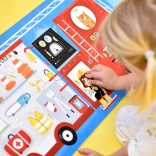 Pripravite se na odlično zabavo s puzzlejem Gasilsko vozilo, ki ni le zabava, temveč tudi izobraževalno orodje. Ta barvita, velika panoramska sestavljanka predstavlja popolnoma opremljeno gasilsko vozilo in njegovo pogumno posadko. Vsebuje ne le tradicionalne koščke, temveč tudi izrezljive elemente, ki jih je treba vstaviti v ustrezne oblike odprtin. Idealno kot prva večdelna sestavljanka za najmlajše, ne le za ljubitelje gasilcev. Izobraževalni komplet prinaša tudi vodnik, poln idej za različne razvojne igre.