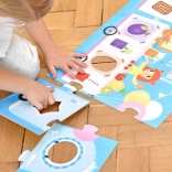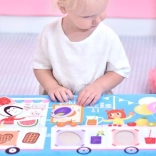 Inovativna izobraževalna sestavljanka za otroke od dveh let. Po sestavitvi skoraj metrskega puzzla je treba prilagoditi delčke ustreznim odprtinam. Pomaga otrokom razlikovati oblike in barve, razvija ustvarjalnost in logično razmišljanje.