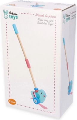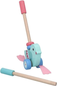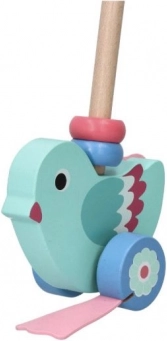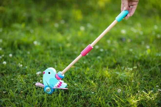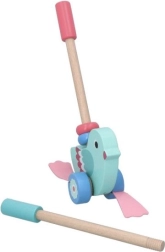 Ta čudovit leseni ptiček na potisk je zasnovan tako, da pomaga otrokom, starim od 12 mesecev, pri razvoju gibalnih in ravnotežnih sposobnosti. Zahvaljujoč odstranljivemu ročaju, ki doseže dolžino 48 cm, je igrača enostavna za potiskanje in upravljanje. Celotna zasnova združuje turkizno telo in rožnata krila, kar spodbuja otrokovo domišljijo in občutek za barve.