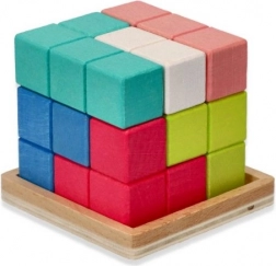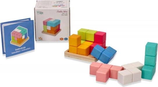 Sestavljanka kocka pomaga otrokom razvijati fino motoriko in povečuje njihovo sposobnost reševanja problemov. Z živimi barvami kot so modra, oranžna, roza in naravni les, ta igrača ne le zabava, ampak tudi poučuje.