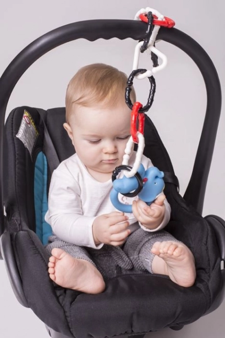 Praktični in varni črno-beli povezovalni členki za najmlajše otroke od 0 mesecev. Idealni za pritrjevanje igrač na voziček, avtosedež ali posteljico. Podpirajo razvoj vida in fine motorike, so lahki, enostavni za čiščenje in z izjavo o skladnosti CE. Varno za novorojenčke, kontrastna črno-bela izvedba in preprosto vzdrževanje za vsakodnevno uporabo.