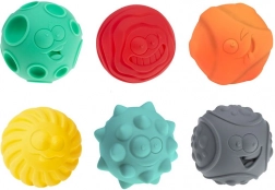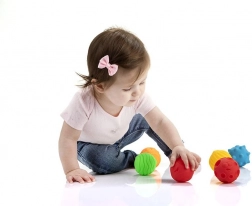 Vsaka žogica ima drugačno površino in izraz, ki prebujata radovednost ter spodbujata senzorično zaznavanje in fino motoriko.