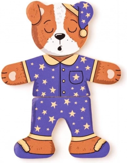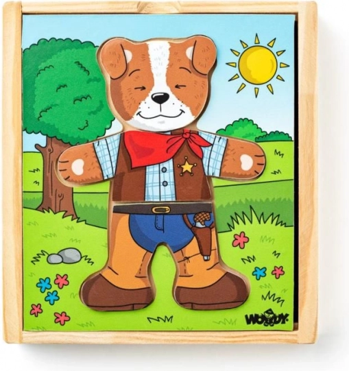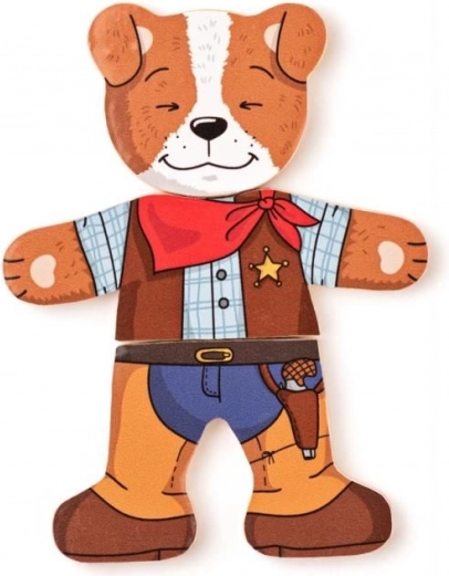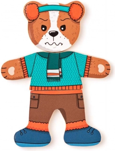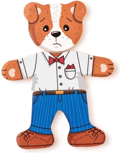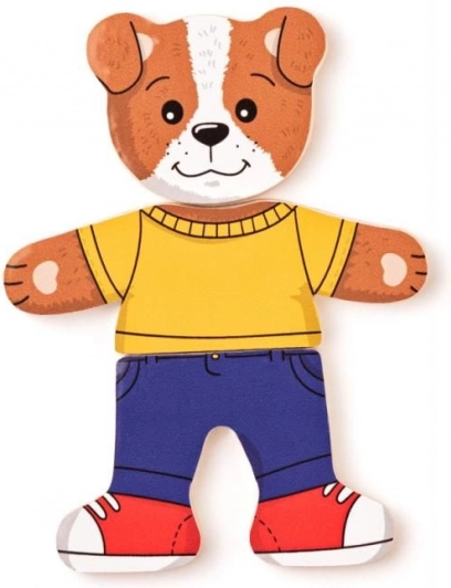 Oblačilna sestavljanka z motivom kužka je idealna didaktična igrača za prve korake v sestavljanju. Otroci lahko kužku menjavajo oblačila, se učijo barv in vzorcev ter razvijajo ustvarjalnost pri izmišljanju zgodb. Majhen format se prilega v nahrbtnik ali otroško torbico za na pot.