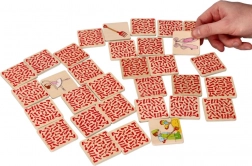 Kartice so iz kakovostnega lesa z gladkimi robovi in trajnim potiskom. Zaradi kompaktnih mer je igra primerna za dom, vrtec in na pot. Brezčasen dizajn in naravni material zagotavljata varno in dolgotrajno igro.