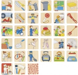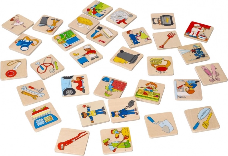 Leseno pexeso Poklici GOKI prinaša otrokom in odraslim pametno zabavo, ki razvija zbranost, logično mišljenje in komunikacijo. Vsak par prikazuje poklic in pripadajoči predmet – otroci se tako naravno učijo prepoznavati različne poklice in njihova orodja.