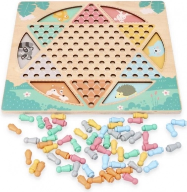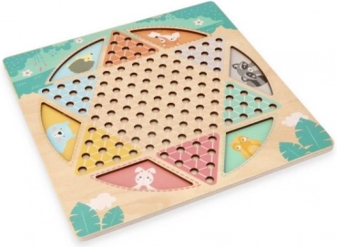 Dvostranska lesena plošča velikosti približno 30 × 30 cm je okrašena z nežnimi motivi živalic in dopolnjena z barvitimi, lahko oprijemljivimi figuricami. Zaradi trdne izvedbe in pregledne grafike je idealna za skupno igranje otrok in odraslih.