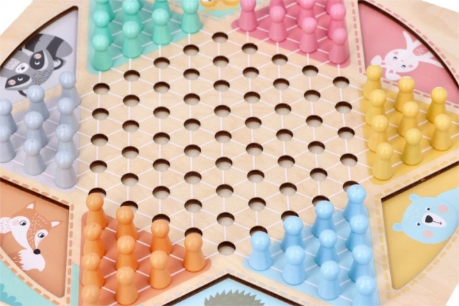 Ta lesena namizna igra prinaša kar dve klasiki v eni. Na eni strani najdete strateško HALAMO (kitajske dame/kitajska dama), kjer je cilj premakniti vse svoje kamne na nasprotno stran. Na drugi strani čaka živahna igra Kače in lestve, v kateri se s kocko pomikate proti cilju, vzpenjate po lestvah in drsite po kačah.