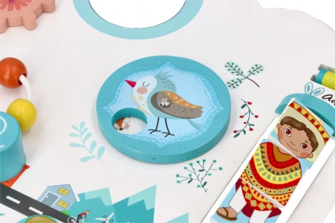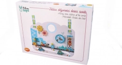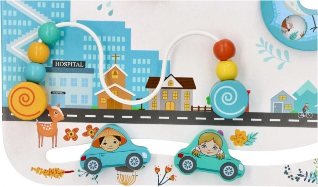 Lesena tabla »Otroci sveta« je zasnovana tako, da naravno podpira senzorični razvoj in samostojno raziskovanje. Pastelna mestna kulisa z živalicami, avtomobilčki in figuricami vabi k odkrivanju in spodbuja domišljijo. Otrok si sam izbira tempo in način igre, s čimer krepi samozavest in potrpežljivost.