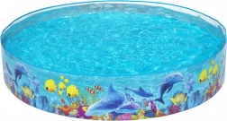 Velik okrogel raztegljivi bazen BESTWAY je idealen za vrt ali vikend. Konstrukcija se po napolnitvi sama stabilizira, trdne stene iz PVC dobro prenašajo običajno uporabo, morska grafika z delfini in ribicami pa otroke takoj navduši. Bazen zlahka očistite, zložite in shranite za naslednjo sezono.