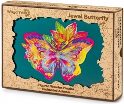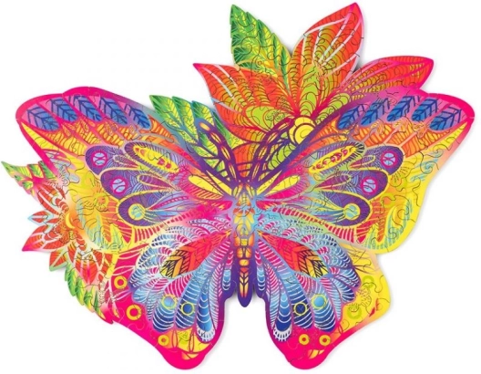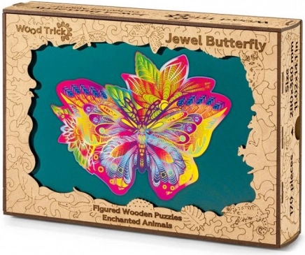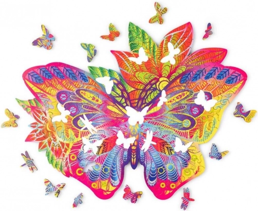 Ta elegantna lesena sestavljanka v obliki metulja bo navdušila vsakogar, ki ceni estetiko, izzive in kakovostno izdelavo. Realistične linije in pisani vzorci po sestavi ustvarijo impresivno sliko, primerno za razstavljanje.