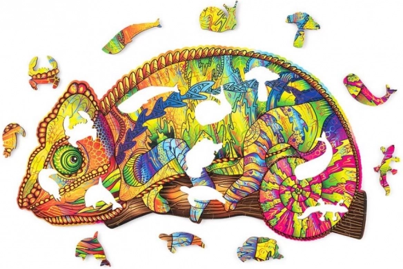 Odkrijte edinstveno leseno sestavljanko kameleon, ki združuje zabavo, trening koncentracije in čudovito dekoracijo interierja. Intenzivne barve, umetniški vzorci in posebni tematski koščki naredijo vsako sestavljanje nepozabno doživetje.