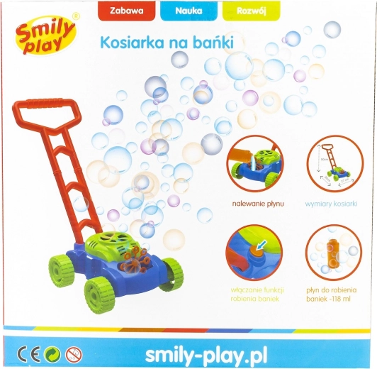 Kosilnica za mehurčke je idealna igrača za otroke, ki si želijo uživati v zabavi na prostem. Uporaba je preprosta: vlijte priloženo tekočino za mehurčke v rezervoar na sprednjem delu kosilnice in jo vklopite s tipko na ohišju igrače.