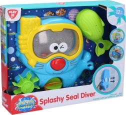 Akvarij z vodnim mlinčkom bo kopanje vašega otroka spremenil v razburljivo doživetje. Z žličko nalijte vodo v tjulnjeva očala in opazujte, kako se ribice v akvariju zavrtinčijo v ples. Pritisnite tjulnju na nos in uživajte v vodni predstavi z barvitimi mlinčki.