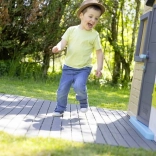 Modularne talne plošče SMOBY spremenijo prostor okoli otroške hiške v varno, ravno in čisto površino. Posamezne ploščice se hitro povežejo s pametnimi zapirali in ustvarijo stabilno podlago za igro na vrtu. Trpežen plast z drenažno strukturo dobro odvaja vodo in zmanjšuje možnost zdrsa.