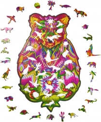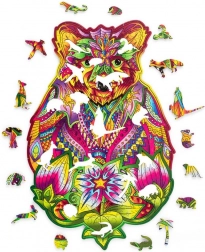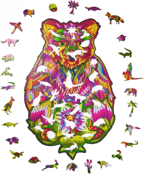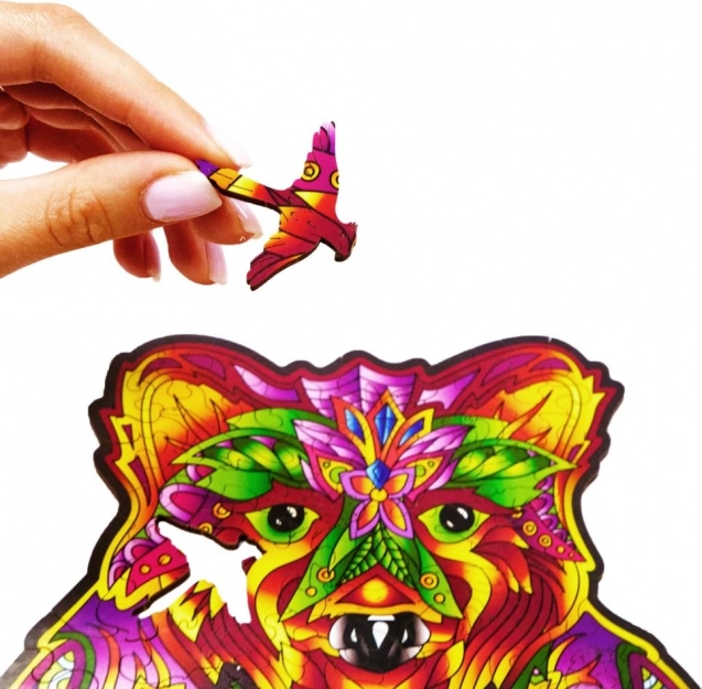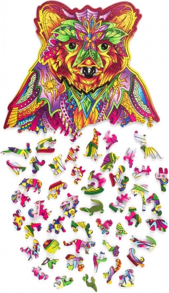 Ta lesena sestavljanka v obliki medveda prinaša edinstveno kombinirano izkušnjo – sproščujoče sestavljanje in končni umetniški motiv. Koščki v živahnih barvah, vključno s posebnimi živalskimi oblikami, spodbujajo osredotočenost, potrpežljivost in fino motoriko.