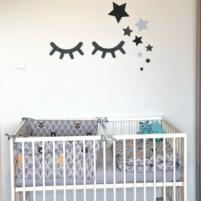 Ljubke stenske nalepke z motivom zaprtih oči in modrih zvezdic spremenijo otroško sobo v čaroben prostor. Set ponuja različne velikosti za kreativno razporeditev in preprosto dekoracijo. Nanašanje je hitro in čisto, nalepke pa se po potrebi lahko tudi nežno odstranijo. Idealno za nad posteljico ali bralni kotiček. Enostavna uporaba, nežne barve, takojšen učinek.