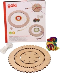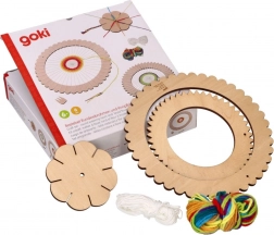 Ta kakovostna lesena pletilna seta Goki prinaša otrokom in odraslim pomirjujočo izkušnjo ročnega dela. Z dvema krožnima okvirjema s premeri 22, 16 in 10 cm ter pletilno cvetlico zlahka ustvarite izvirne mandale, podstavke, dekoracije ali majhne tekstilne dodatke. Seta podpira zbranost, koordinacijo oko–roka in estetsko dojemanje.
