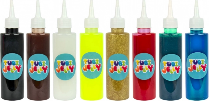 - 8 gelastih barv (150 ml) – modra, bela, rdeča, neonska, rjava, turkizna, črna in bleščičasta