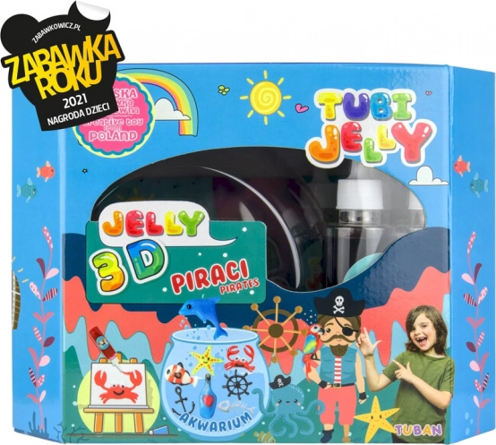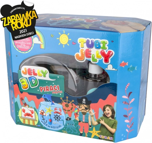 Odkrijte kreativni set Tubi Jelly pirati 3D z velikim akvarijem 3,7 l, s katerim ustvarite pisane 3D gelaste figurice z morsko tematiko. V kompletu je 8 gelastih barv, vključno z neonsko in bleščičasto, aktivator, vodni kristali ter 15 predlog + 1 prazna za lasten dizajn. Odlična zabava za kreativne otroke – opazujte, kako se tekoči gel spremeni v čvrste figurice, pripravljene za igro in razstavljanje.
