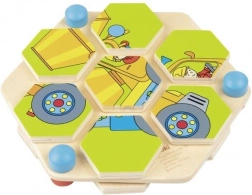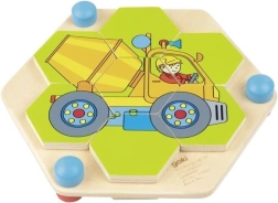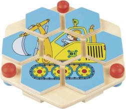 Lesena šestkotna sestavljanka Gradbeni stroji Goki