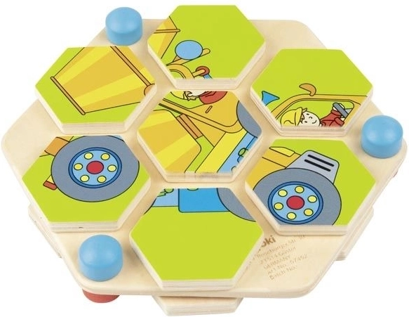 Naj se vaši otroci potopijo v svet ustvarjalnosti s to čudovito leseno sestavljanko v obliki šesterokotnika. Vsak vrtljivi heksagon mora biti pravilno postavljen, da ustvari barvno sliko gradbenih strojev. Ta uganka je nameščena na trdni, naravni leseni plošči, ki zagotavlja dolgo življenjsko dobo in prijaznost do okolja. Igrača ne prinaša le ur zabave, temveč pomaga tudi pri razvoju logičnega mišljenja in koordinacije oko-roka.