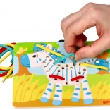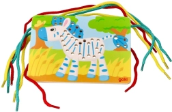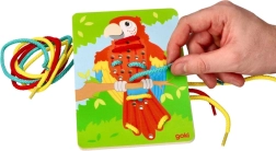 Razvijajte fino motoriko in koncentracijo vašega otroka z lesenimi veznimi igračami v obliki papige, leva in zebre blagovne znamke Goki. Te igrače so izdelane iz lesa, kar zagotavlja njihovo vzdržljivost in lažje rokovanje za otroke. Paket vsebuje tri slike in barvne vrvice za ustvarjalno zabavo.